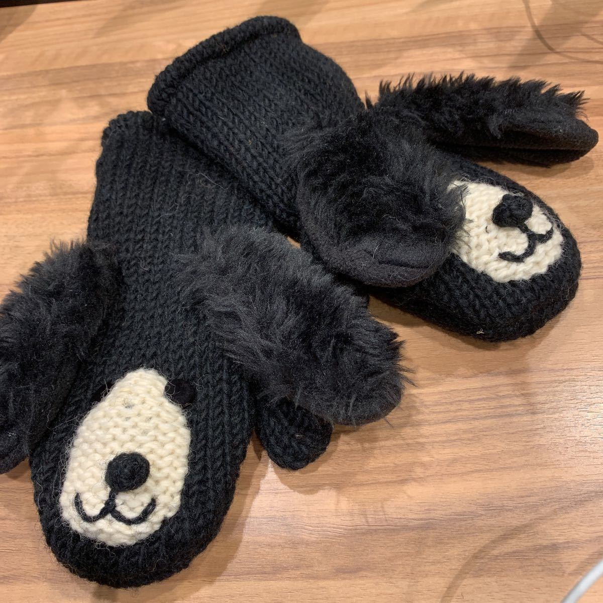 - 犬の 手袋 てぶくろ 黒い モコモコ レディース 子供用 耳つき ニット 可愛い
