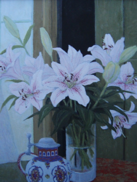 - 奥西賀男【ユリ】希少画集画、状態良好、新品高級額装付、送料無料、洋画 油彩 風景、zero