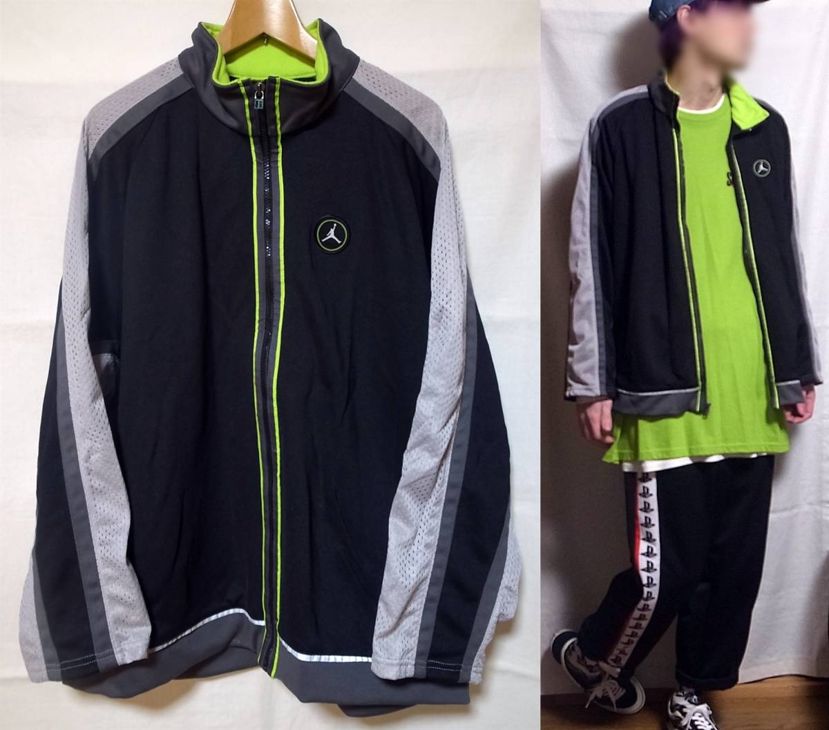 - ナイキ ジョーダン トラックジャケット ジャージ 黒 ライムグリーン ヴィンテージ 古着 M NIKE JORDAN TRACK JACKET Black kawasaki green