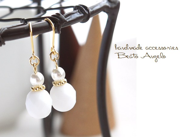 > ◆◆+angelo+チェコビーズとチェコパールのピアス(p-392)チョークホワイト G 香水瓶 チタン 樹脂 イヤリング