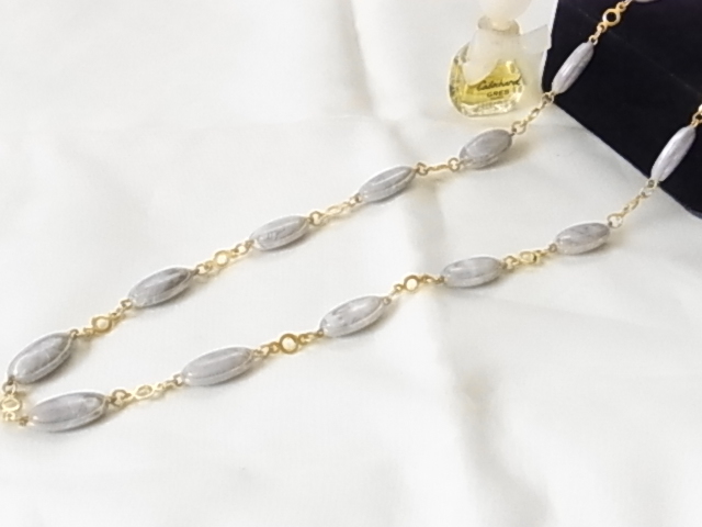 - ブルーグレー系のカラー マーブル模様調 大理石模様調 楕円形 ストーン調 ヴィンテージ ロングネックレス●●