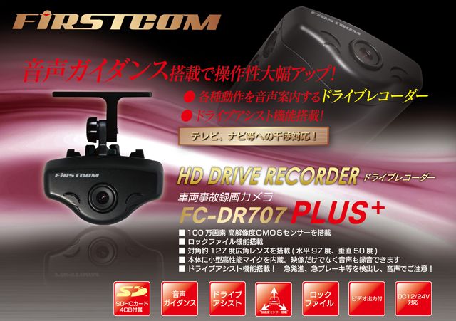 - 新品保証なし■FIRSTCOM FC-DR707 PLUS [音声ガイダンス機能付 ドライブレコーダー]