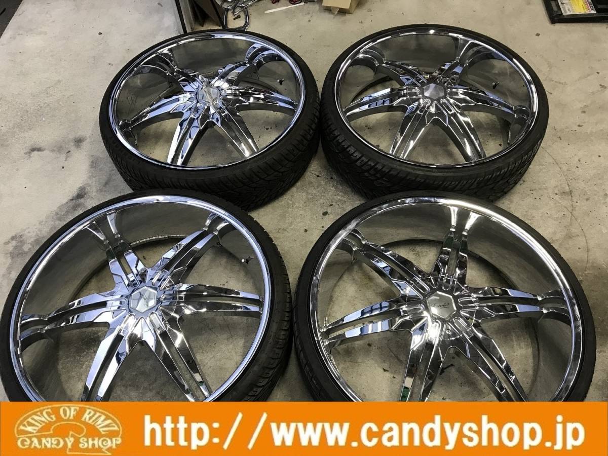 > 【新品×美品】30インチESTRELLA9.5J★5穴PCD114.3メッキ★新品275/25R30ハリアーRAV4ムラーノ300CマグナムFX35ハイライザーDONKタイヤset