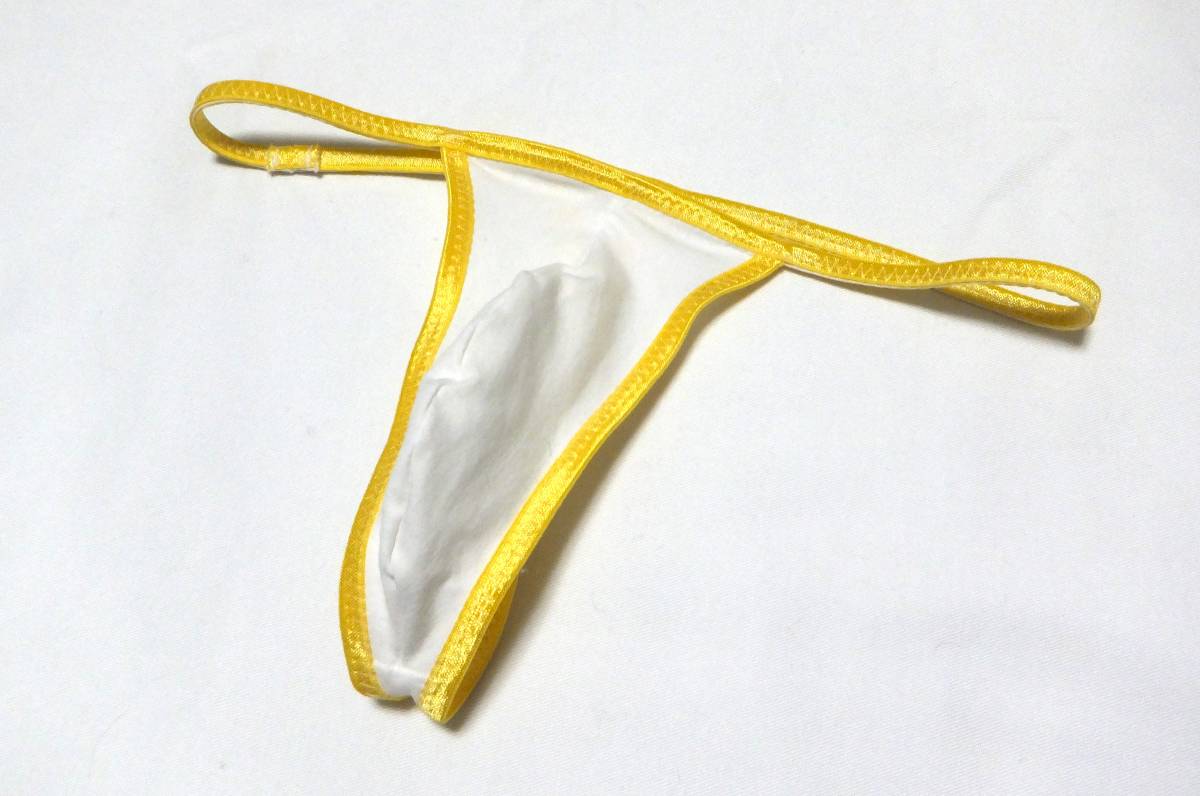 - 【新品】メンズ深めもっこりフルシーム柔らかコットン生地白×黄色Tバック
