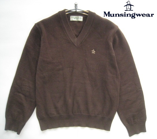 - 高級!!マンシングウェア MUNSINGWEAR*ペンギンロゴ刺繍 ウールニットセーター S こげ茶 ブラウン