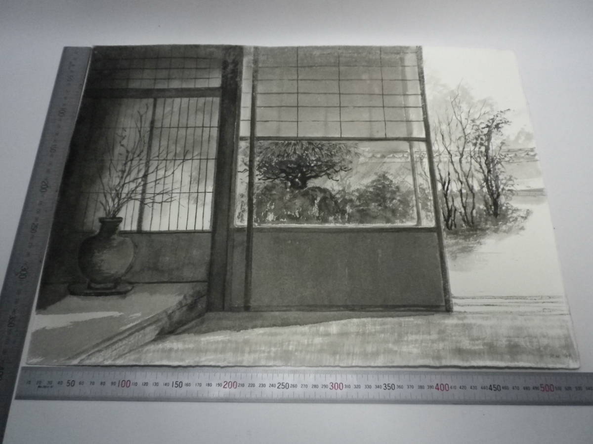 - 「座敷から・富田林市寺内町1」水墨画【坂垣内 将泰】作者直筆原画「真作」P10号ハーネミューレ紙(経年保管品)【送料無料】00700012