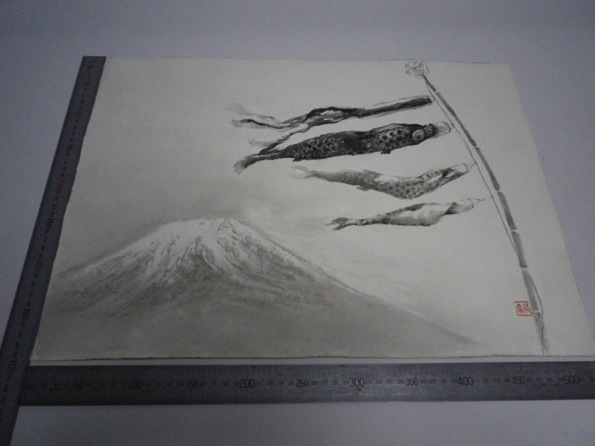 - 「富士・こいのぼり~滝(裏表描画)」水墨画【坂垣内 将泰】作者直筆原画「真作」P10号ハーネミューレ紙(経年保管品)【送料無料】00700043