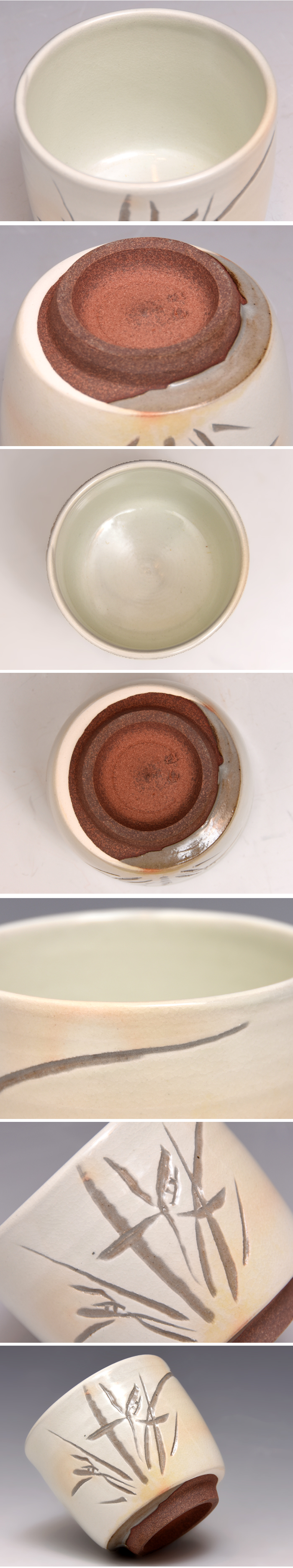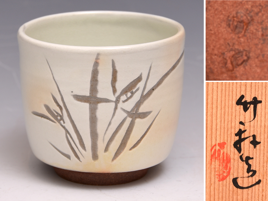 - 三浦竹軒(造)蘭花図茶碗 共箱 共布 しおり 政府認定技術保存資格者 茶道具 京焼 未使用 b7239o
