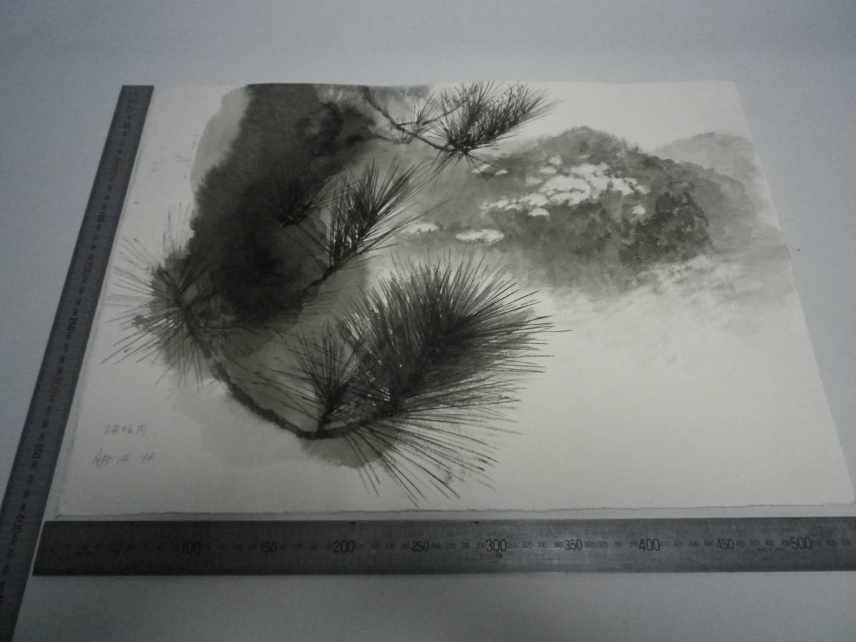 - 「松葉 ~ 花 (裏表描画)」水墨画【坂垣内 将泰】作者直筆原画「真作」P10号ハーネミューレ紙(経年保管品)【送料無料】00700141