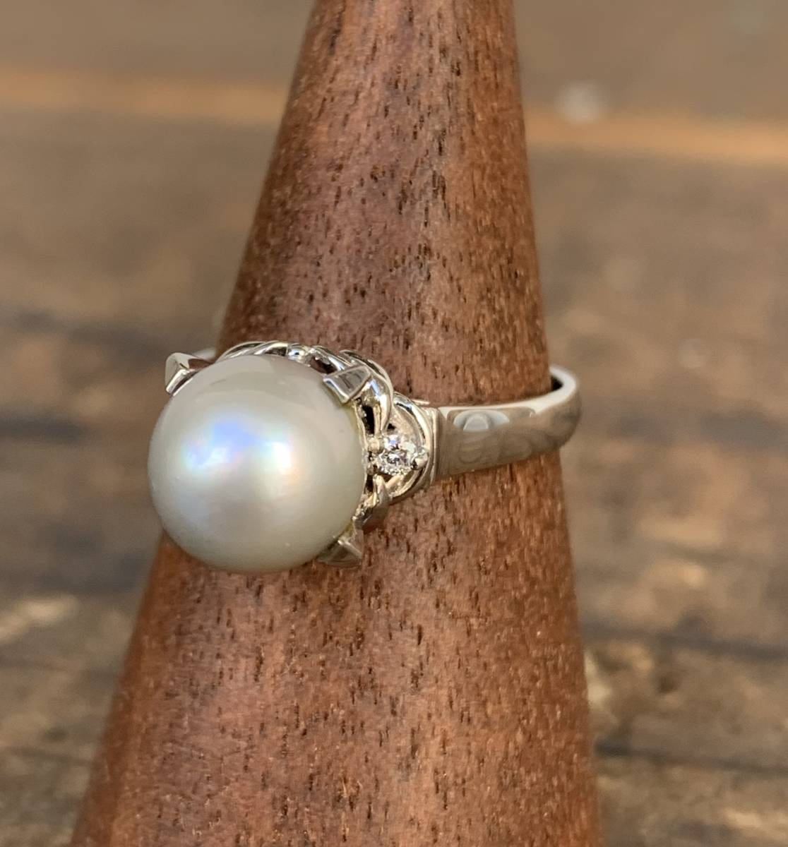 - ★ジュエリー★パール★真珠★ダイヤモンド★リング★指輪★幅8.4mm★0.40ct★Pt900★プラチナ★5g★12号★アクセサリー★