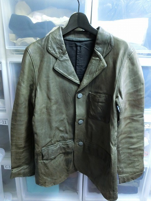 - ISAMU KATAYAMA BACKLASH レザージャケット オリーブ イサムカタヤマ バックラッシュ