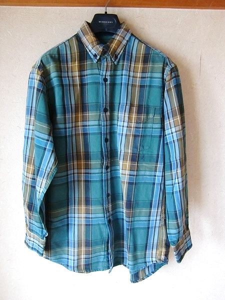 > 美品☆J.CREW ジェイクルー☆長袖ボタンダウンシャツ Sサイズ グリーン×ブルー系チェック 胸ポケット1つ有 100%COTTON (株)レナウン