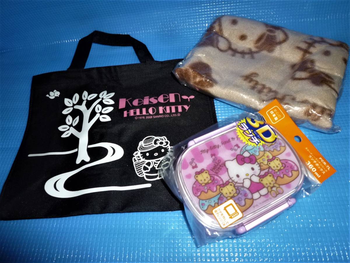 > a★未使用★オーエスケー ハローキティ スイーツ3D お弁当箱とトートバックとブランケット
