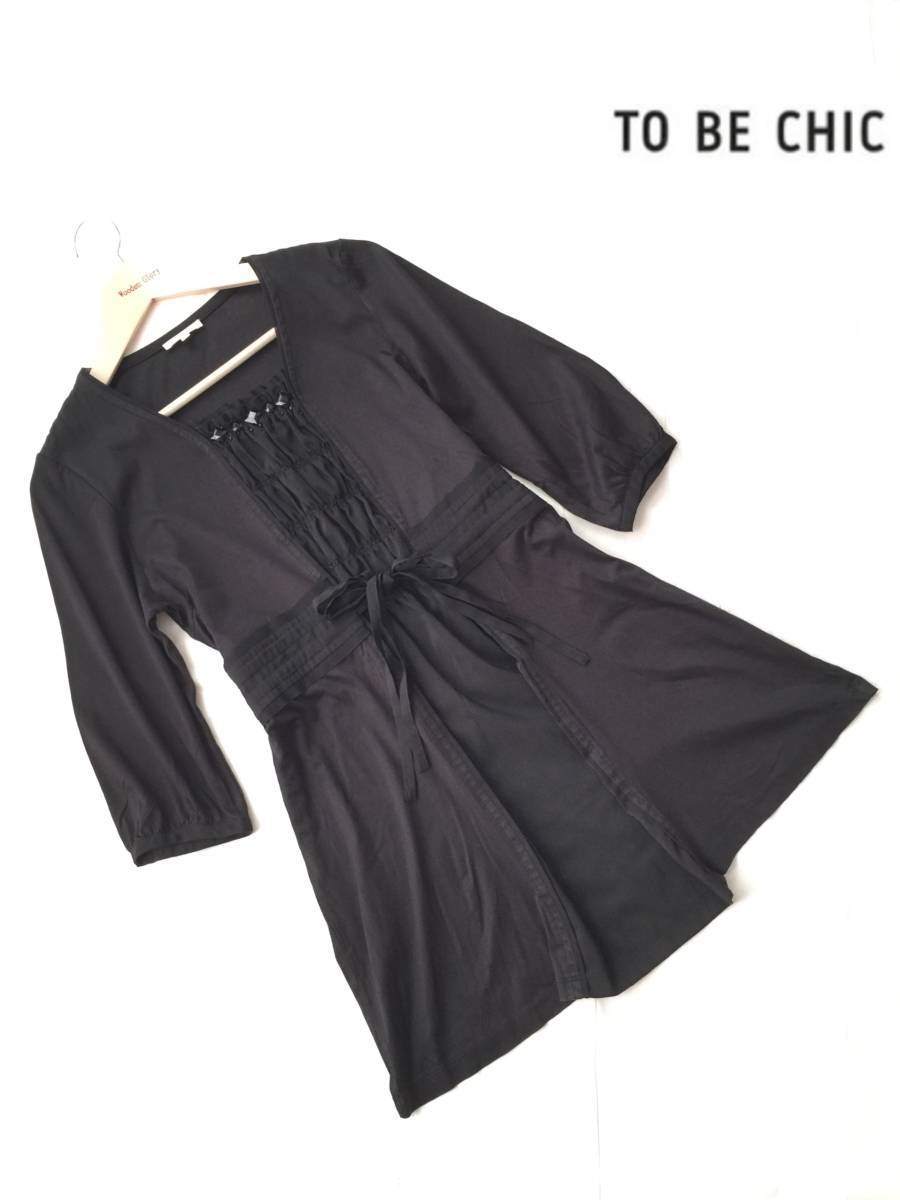 > ★TO BE CHIC トゥービーシック★チュニック ワンピース/ロングカットソー Ⅱ 黒 レディース ストレッチ☆ビジュー トップス シフォン 七分