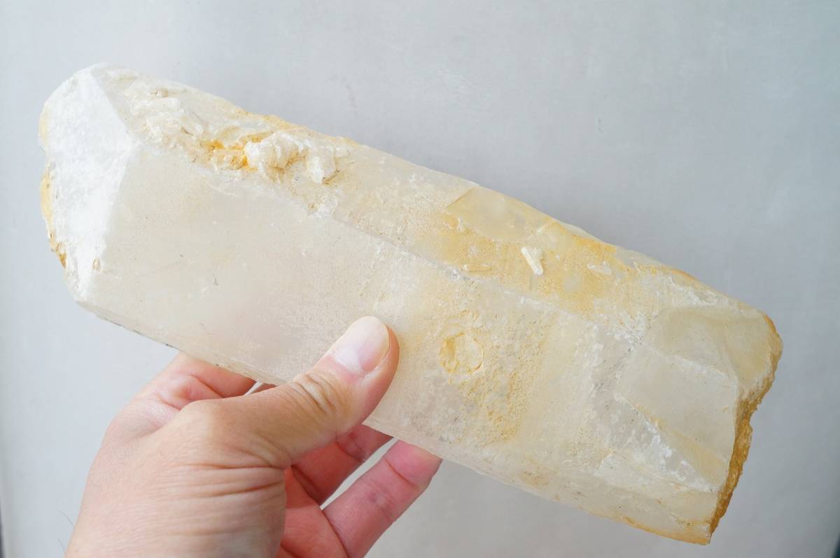 - 35年前の未使用在庫!特大一本剣六角柱状原石【半分】!丸玉、彫刻品製作用AAAランク極上天然水晶原石高透明度1.1Kg