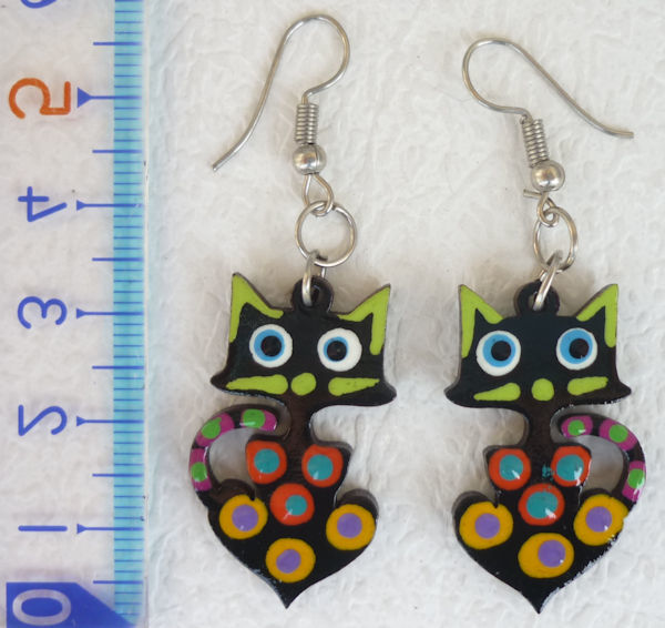 - 送料無料 ペルー ピアス PI-034-06 木製 軽い アンデス クスコ インカ 音符 猫 蝶々 ハート 花 フクロウ 楽器 イグアナ フォルクローレ衣装