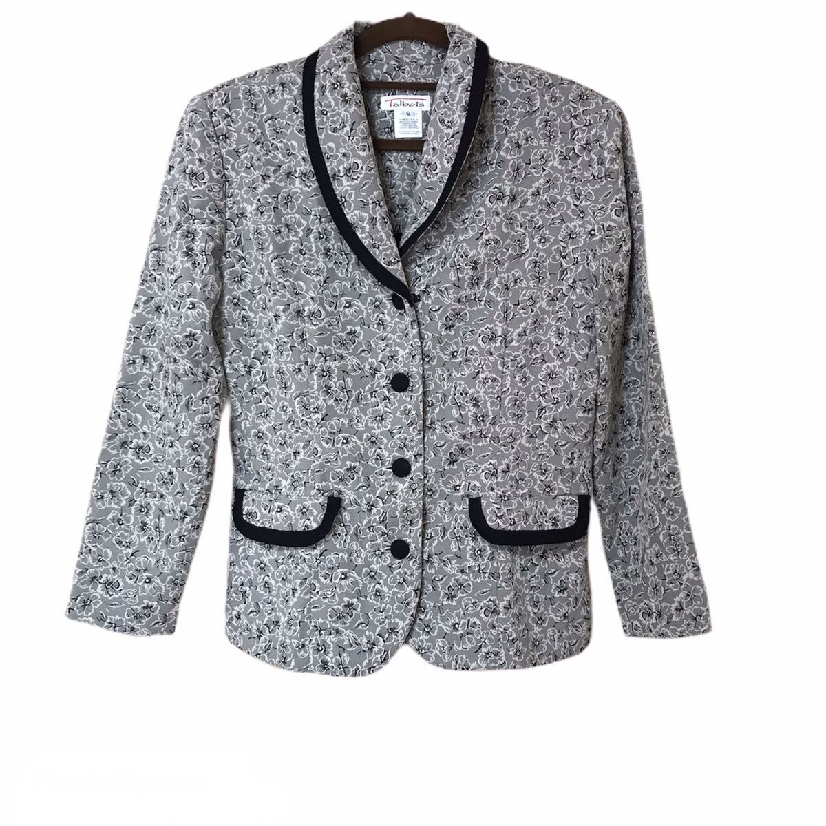 - C 美品 Talbots タルボット ジャケット レトロジャケット フリーサイズ相当 グレー ボタニカル
