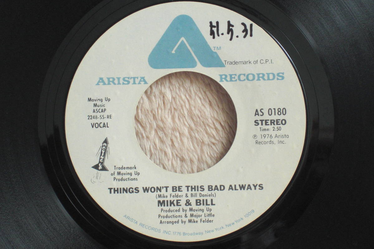 - USシングル盤45’ Mike & Bill : Things Won't Be This Bad Always / Same (Instrumental) (Arista AS 0180) E