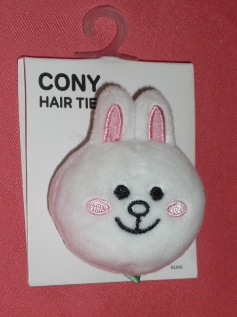 - 激レア!カワイイ♪ LINE キャラクタ一 うさぎ ウサギ コニー 顔型 ぬいぐるみ付 ゴム紐 ヘアゴム ☆
