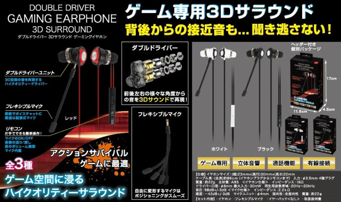 - ゲーミングイヤホン ダブルドライバー 3Dサラウンド 1種 黒 赤 白 新品(買管理:285)(10月6日)
