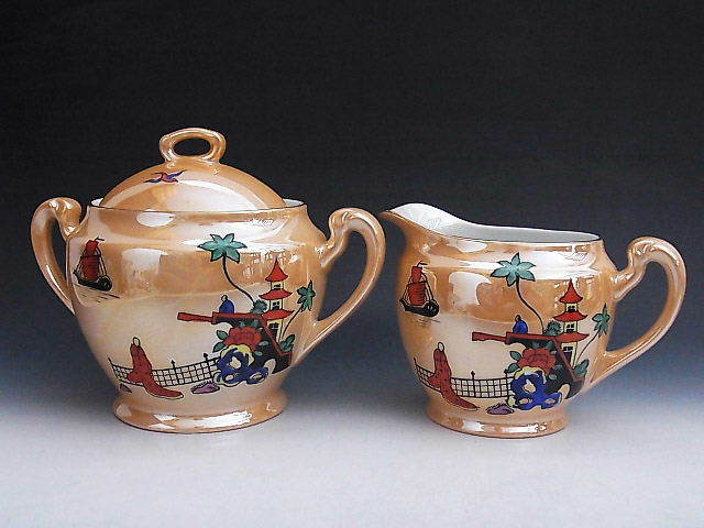 - オレンジラスター彩 南蛮風景 シュガー&クリーマー ◆ オールドノリタケ