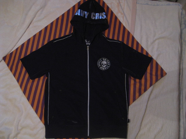 > 【古着・美品】☆バツスタジオBA-TSU STUDIO ラメプリント フード付 HEAVY CRISIS スカルノジャンパー 半袖 / 限定品!