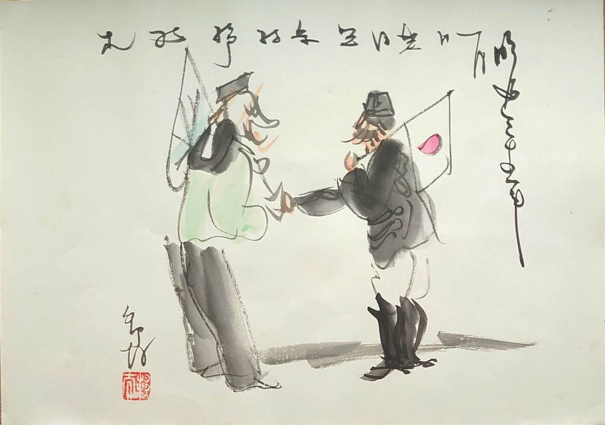 > f20072101〇肉筆漫画 色彩手書き 開国六十年史図絵 No.26 日英同盟成る 明治35年 和田クニ坊 昭和2年 中央美術協会〇和本古書古文書