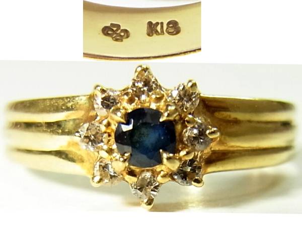 - 銀座ジュエリーマキ0.11ctブルーサファイア&0.1ctダイヤリング10号イエローゴールドK18フラワーモチーフ指輪ダイヤモンド宝石花デザイン金