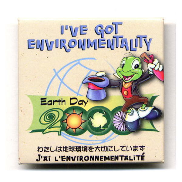 - ディズニー ジミニー 缶バッジタイプバッジ 2000年アースデイ USAディズニーテーマパーク