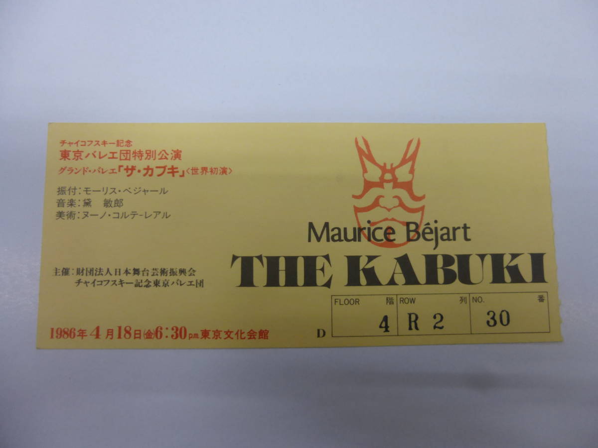 > ◆古いバレエ公演 チケット半券23 東京バレエ団特別公演 グランド公演「ザ・カブキ」 1986年 モーリス・ベジャール 歌舞伎