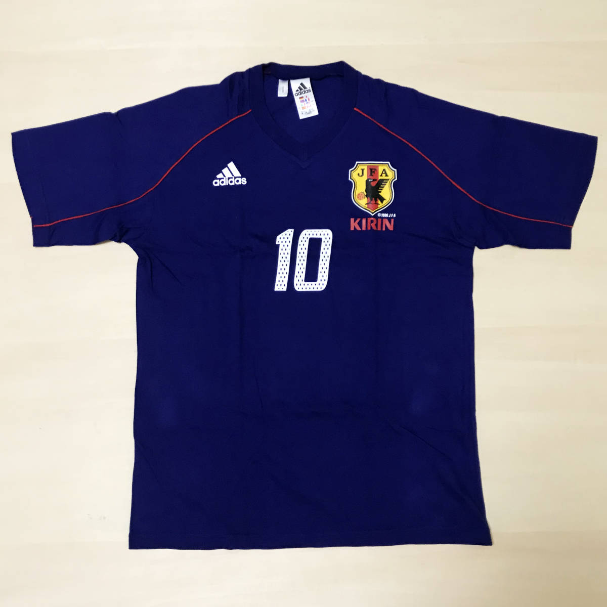 - 即決! 2002 02 日韓 W杯 日本代表 ユニフォーム Tシャツ アディダス キリン 勝ちT Lサイズ 半袖 新品 非売品 応援用 炎 ドーハ カズ 中田