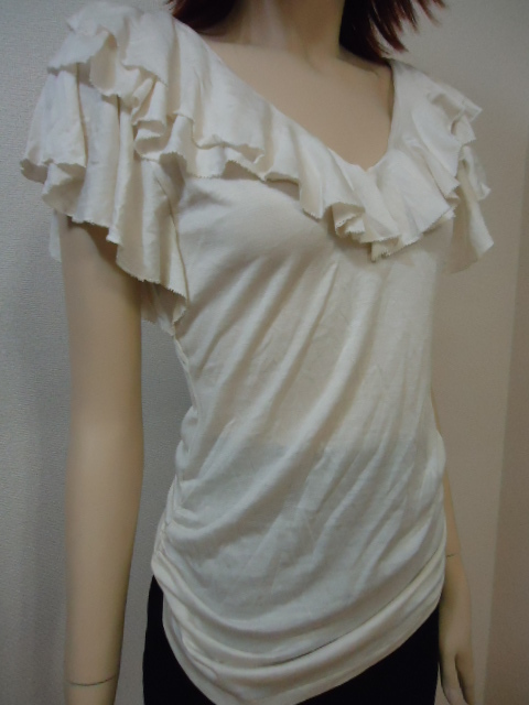 > 【KCM】ralph-131-USS■新品■【RALPH LAUREN/ラルフローレン】レディース 半袖フリルカットソー USサイズS オフホワイト系