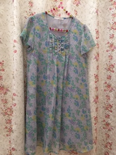> ローリーズファーム さわやか グリーン 系 の 花柄 チュニック ワンピース ブラウス 代わりにも L 半袖