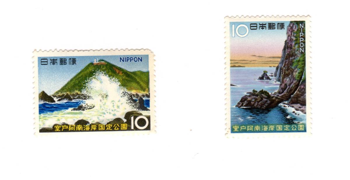> 昭和41年1966「国定公園切手 室戸阿南海岸/室戸岬~阿南海岸の千羽海崖」10円切手2枚・未使用【送料無料】「熊五郎の切手」00800233
