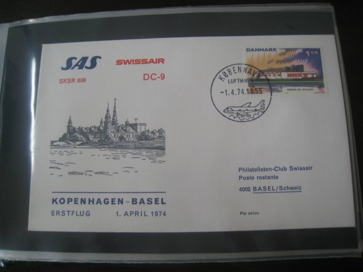 - ★F207 FDC/FFC初日カバー1974 スイス航空/スカンジナビア航空 DC-9 コペンハーゲン - バーゼル -