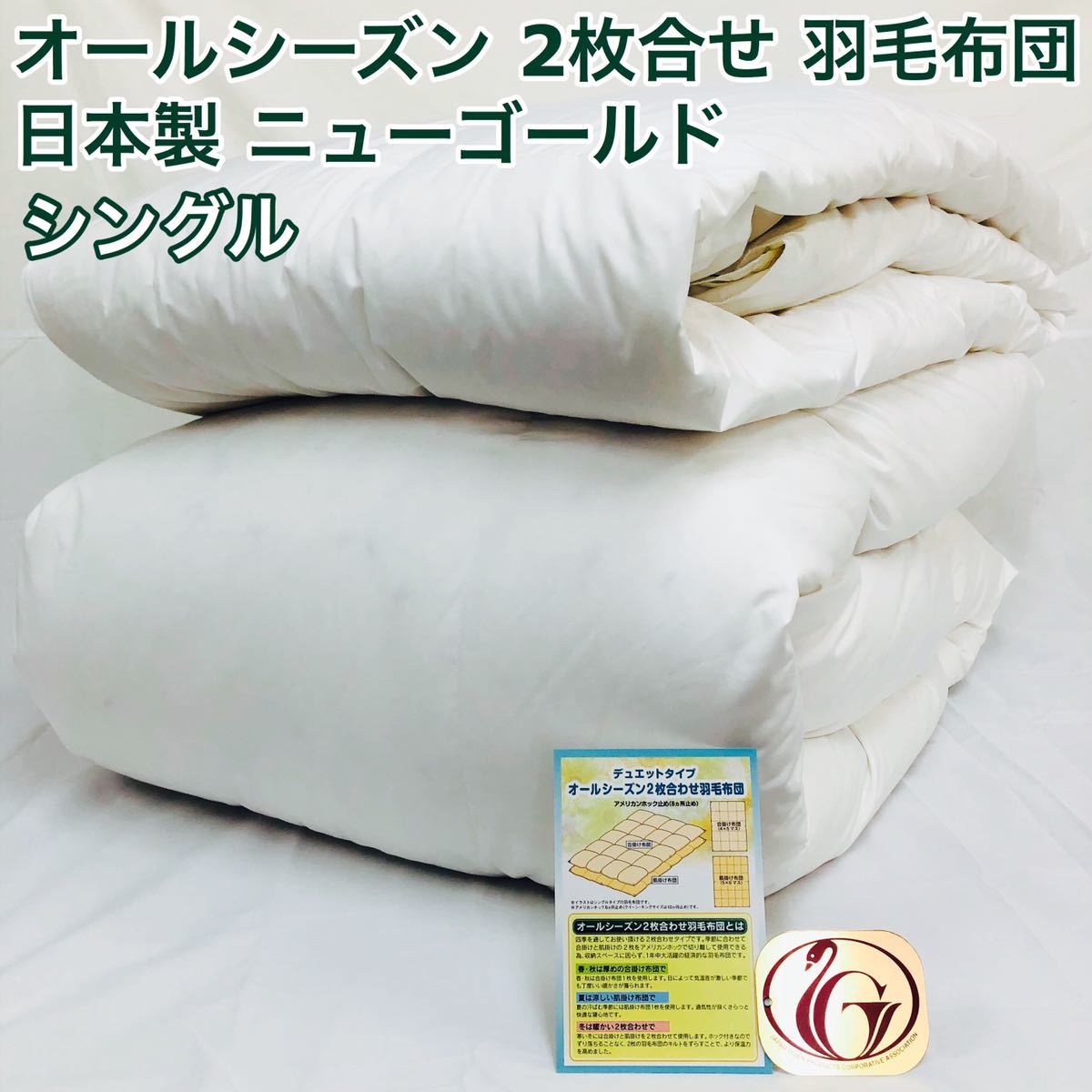 - 2枚合わせ 羽毛布団 シングル ニューゴールド 白色 日本製 150×210cm