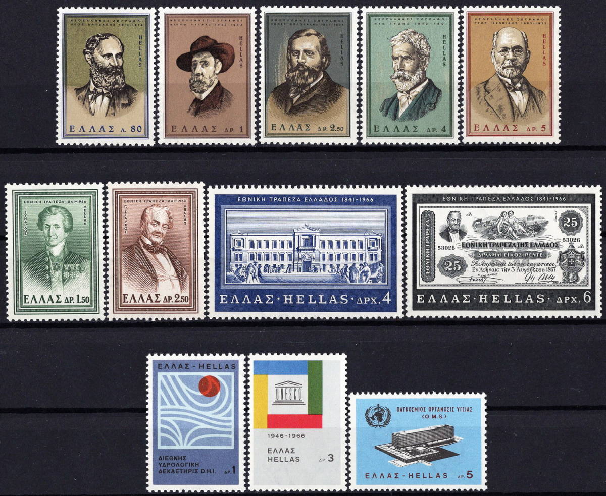 - ★1966年 ギリシャ - 「ギリシャの画家」5種完+「国立銀行125周年」4種完+「UNESCO20周年」3種完 未使用(MNH)(SC#840-851)★VF-03