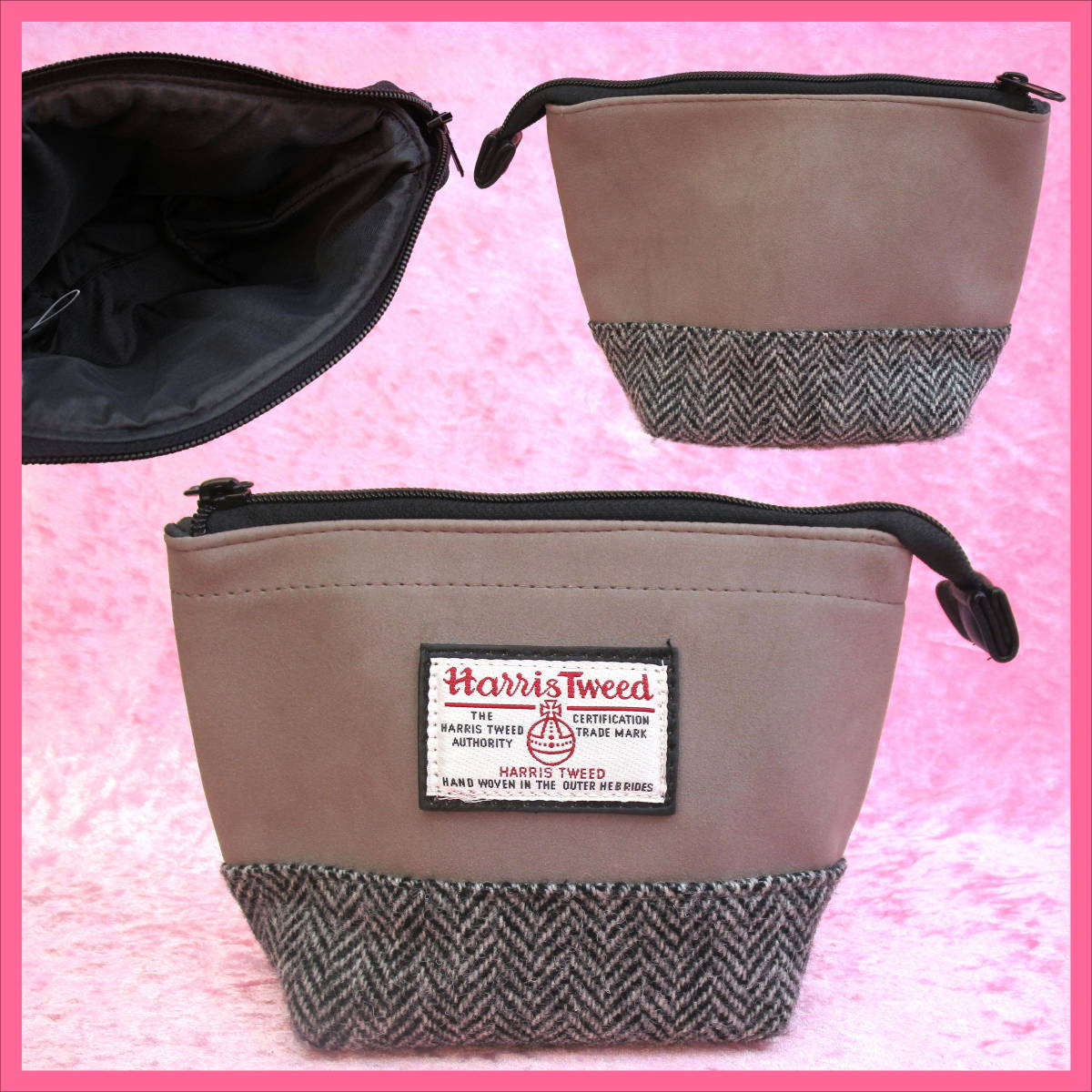 - Harris Tweed ハリスツイード ポーチ 化粧ポーチ 舟形 グレー系 ★ 1点 美品