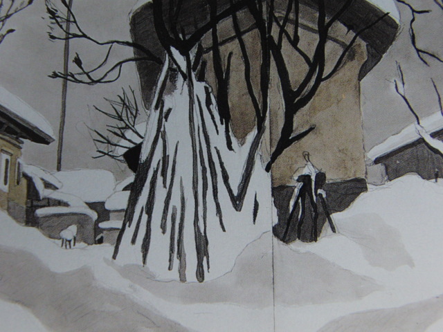 - 斎藤清、【西会津町・野沢】、希少な大判額装用画集より、美品、新品額装付、送料込み