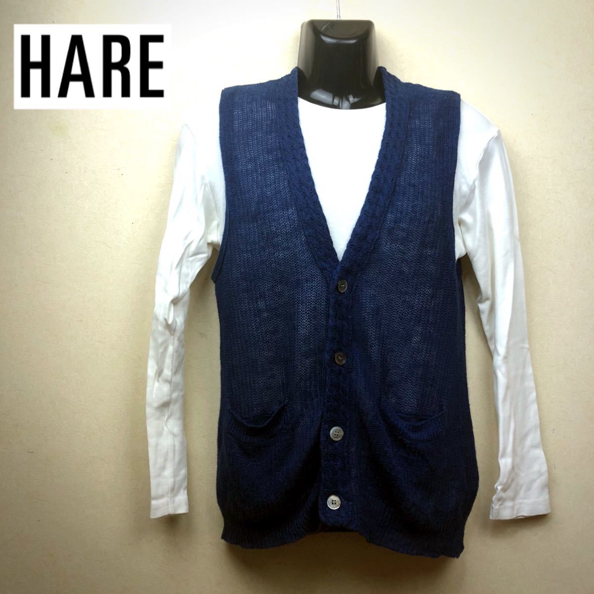 - 即決★HARE★ハレ★メンズ★ニットベスト★ネイビー★濃紺★S★麻100%★お洒落★