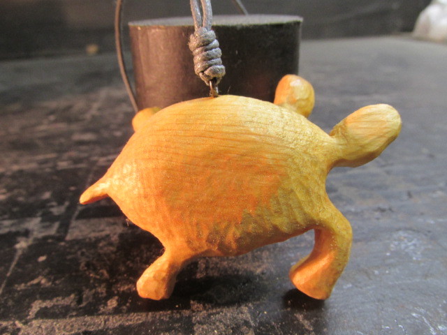 - 榧オイルフィニッシュ「窓際に吊るされた亀」彫刻ペンダント 立体彫刻