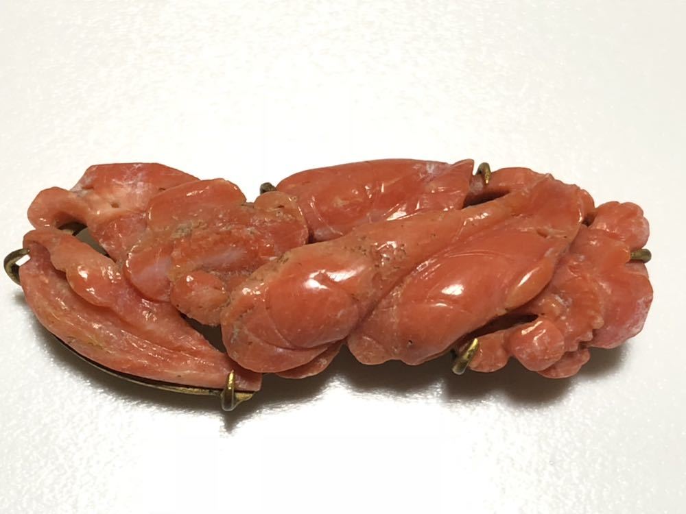 - アンティーク 本珊瑚 5.5g 梅花細工 帯留め【検/さんご/サンゴ】