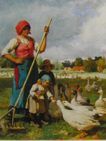 - ジュリアン・デュプレ、がちょうの餌づけ、希少画集より、新品額・額装付、salt.