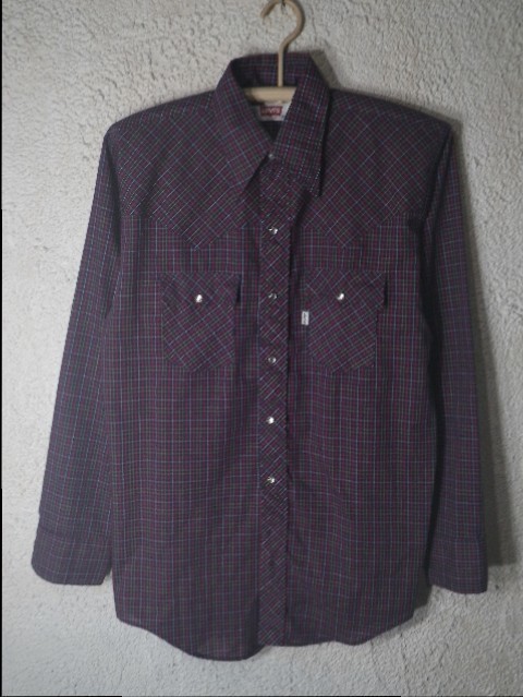 > n4937 レア Levis リーバイス 60s 70s ビンテージ サドルマンタグ 薄手 チェック ウエスタン シャツ スナップボタン