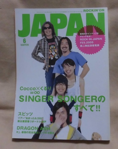 - 【ROCKIN'ON JAPAN】2005年6月号 vol.278/Cocco×くるり=∞/SINGER SONGERのすべて!!/スピッツ/ドラゴンアッシュ