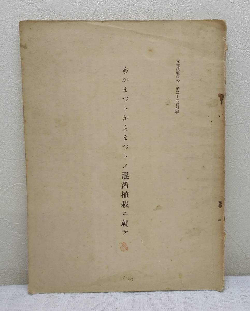 - 自■林業試験報告 第26号別刷 あかまつトからまつトノ混淆植栽ニ就テ 大正14年 農林省林業試験場 編 大日本山林会