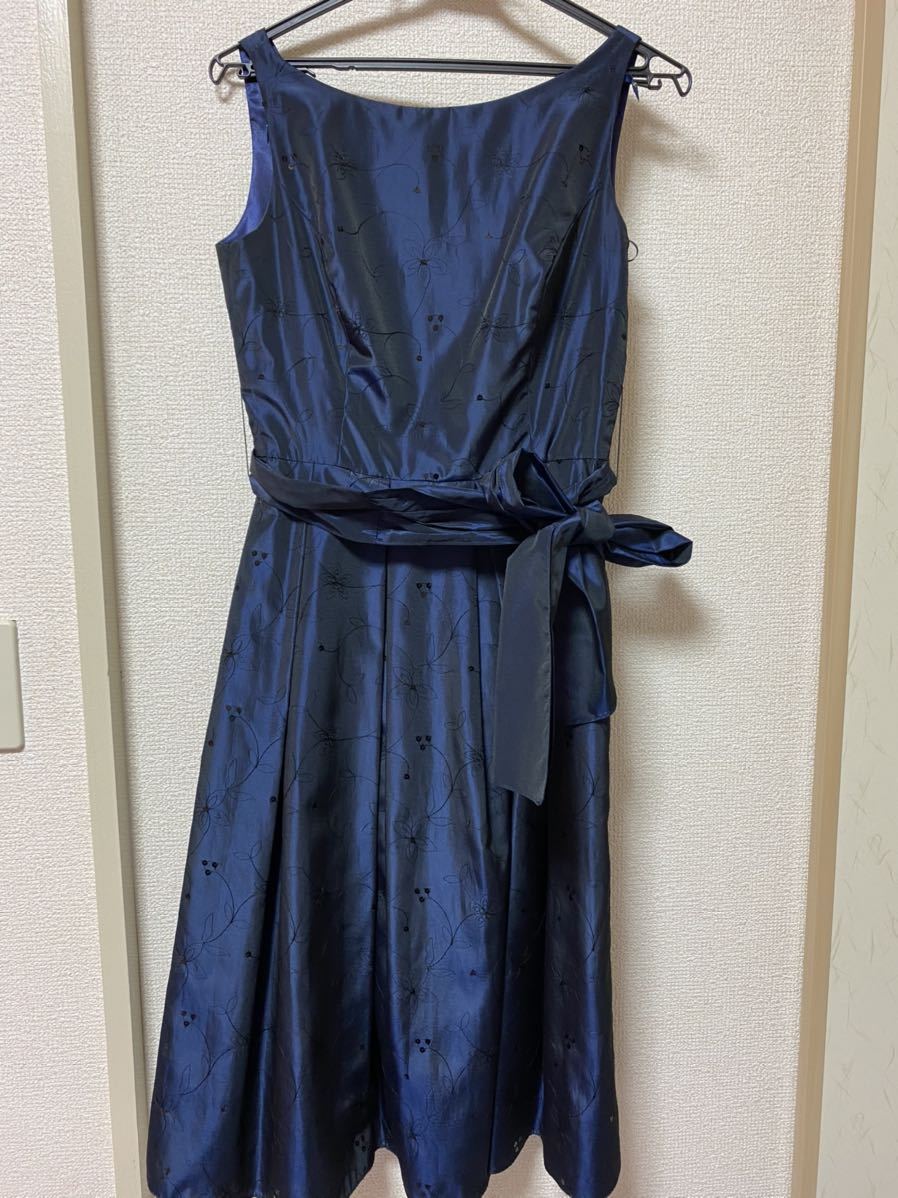 > ジュネビビアンgenet vivien フォーマルロングドレス ワンピース ジャンパースカート 紺色ネイビー くるみボタン ウエスリボン 花柄刺繍