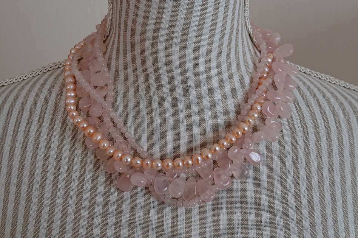 - □素敵□淡いピンク×パールビーズ×カラーストーンMIX□4連ネックレス□