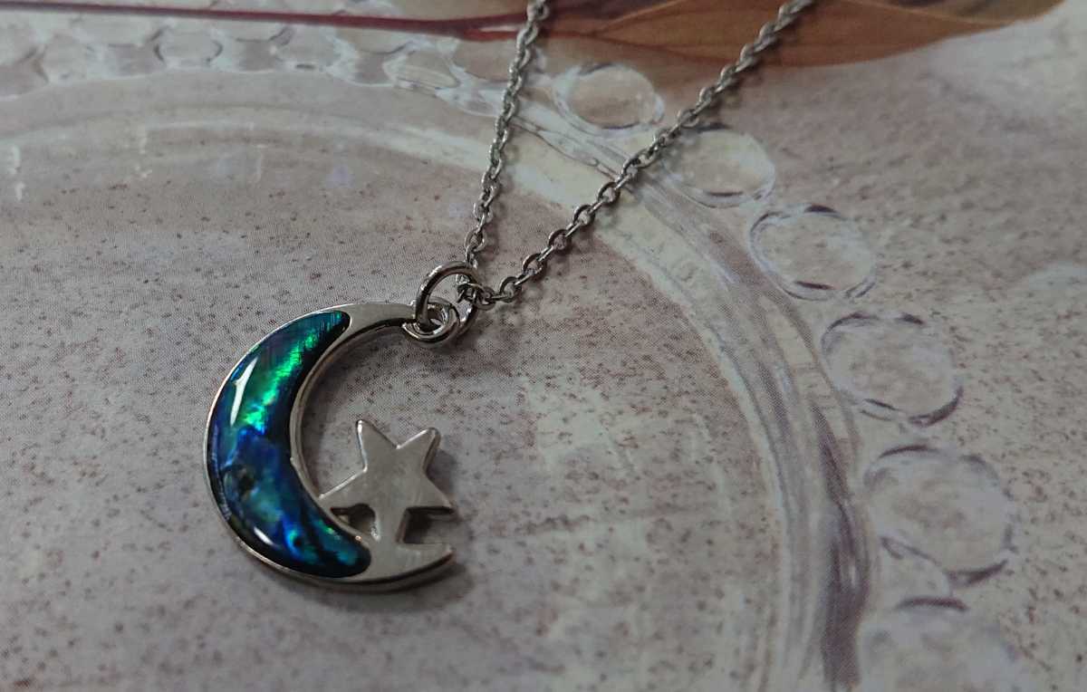 - □オ―ロラ系ブルービジュ―×三日月&お星様のペンダント□シルバーカラーチェ―ン□
