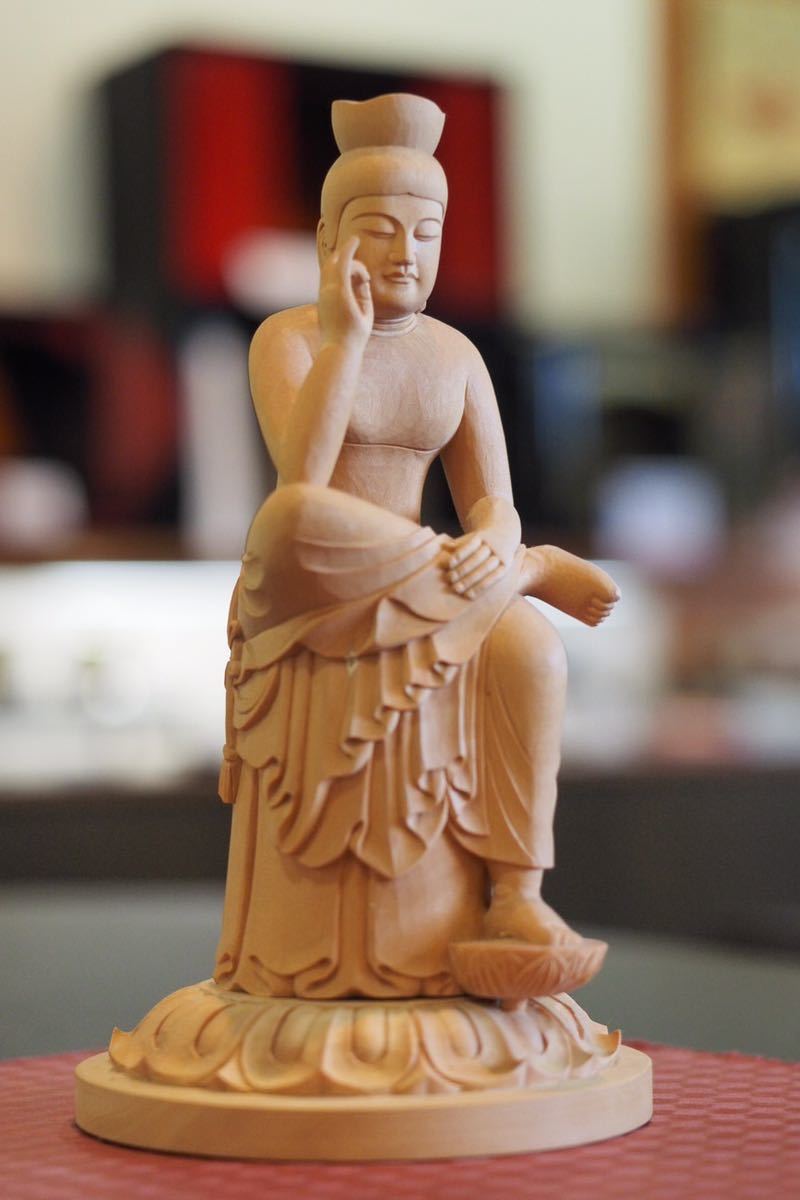 - 新品未使用 半跏弥勒 拓殖 上級木彫 仏像 仏教美術 弥勒菩薩半跏思惟像 ツゲ